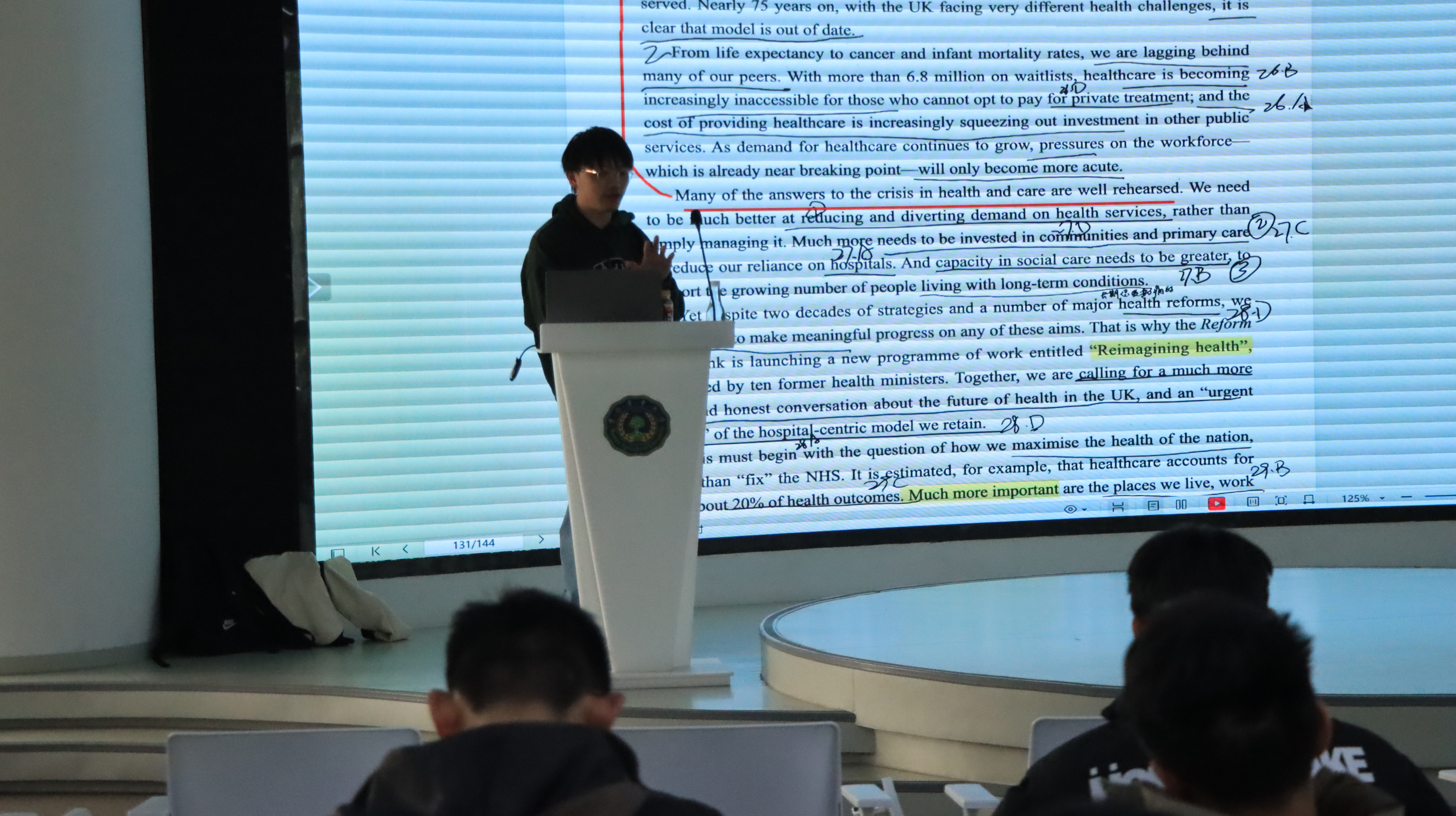 政治课程于11月28日至30日在正德楼举办,共9课时,课程围绕“攻克材料分析题”展开,系统讲解马克思主义基本原理、毛泽东思想和中国特色社会主义理论体系等核心内容,传授“原理-方法论-材料结合”解题技巧,并结合年度时事政治热点进行考点预测与模拟训练。英语课程于12月2日至3日在共享交流厅举办,共6课时,课程重点突破写作与阅读两大难点,详细讲解作文框架构建、万能句型运用,并传授“关键词定位法”等阅读解题技巧,通过真题演练强化应试能力。