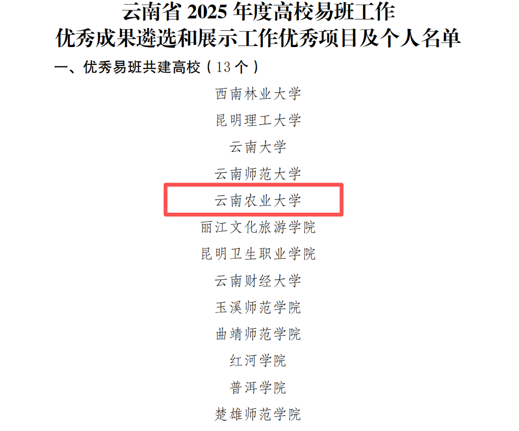 近日,云南省高校易班发展中心发布云易班函〔2026〕1 号文件,对云南省 2025 年度高校易班工作优秀成果遴选和展示工作优秀项目及个人名单进行公示,我校凭借在易班建设、网络思政教育、育人实践等方面的突出表现,再度斩获多项省级荣誉,持续彰显学校易班共建与网络育人工作的扎实成效和强劲实力。