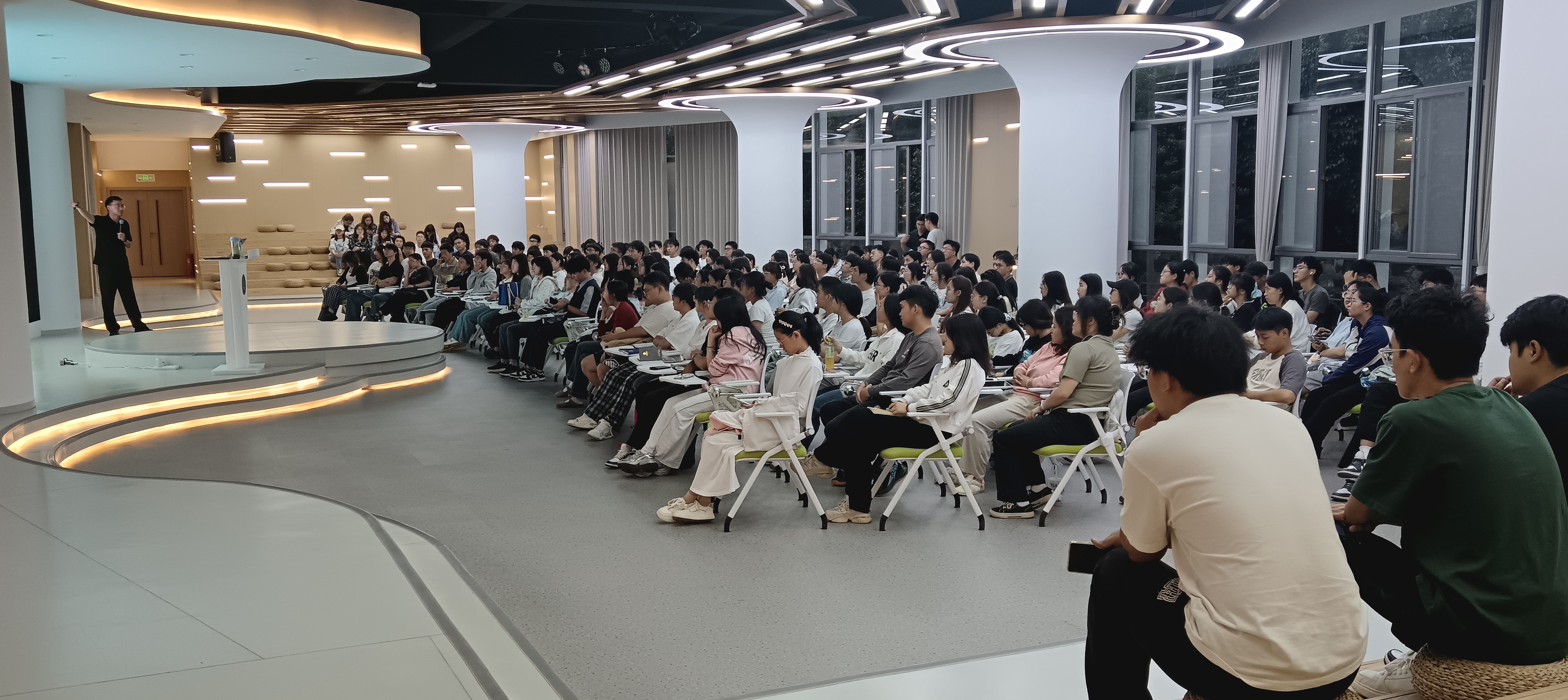 9月15日,为助力学生明晰考研形势、规划备考路径,由学生处(学生中心)主办的2027届考研规划讲座在“一站式”学生社区共享交流厅举行。讲座邀请到了专业指导老师为同学们讲解备考规划,180余名考研学子参加了此次讲座。